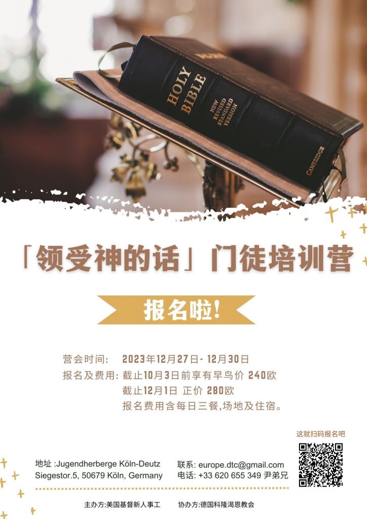 基督新人事工 DTC门徒训练营 纽伦堡华人基督教会 | CCG Nürnberg 杜塞道夫华人基督教会 | CCG Düsseldorf 法兰克福华人基督教会 | CCG Frankfurt 德国中文图书馆 | Chinese Library 康来昌牧师 | Pastor Kang